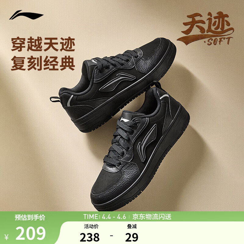 李宁天迹SOFT丨板鞋男鞋低帮小白鞋增高厚底回弹夏季潮流复古运动鞋 黑色(341款)-5 42