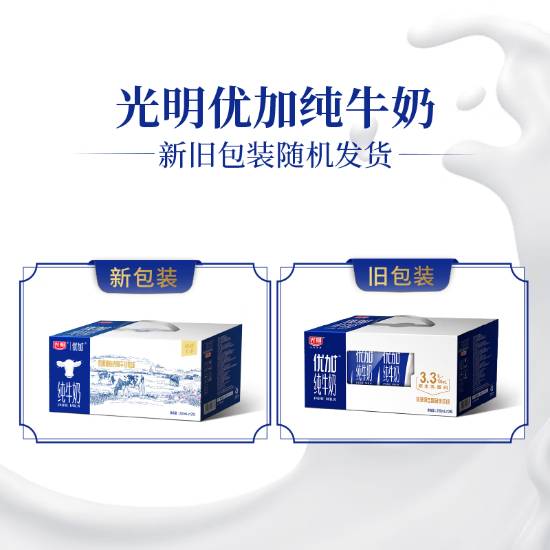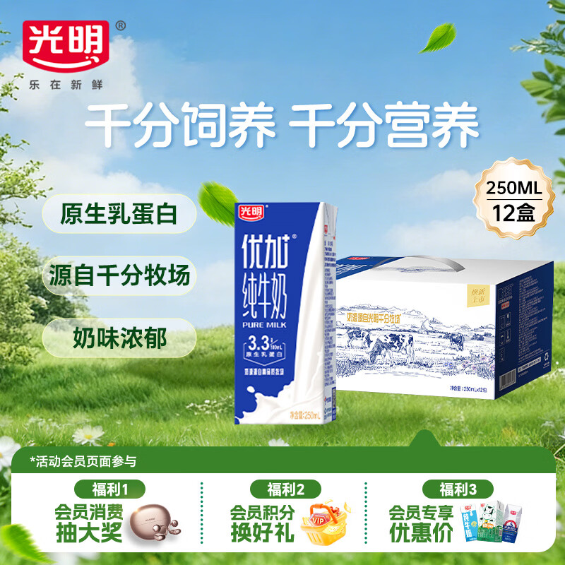 光明优加纯牛奶250ml*12盒3.3g原生乳蛋白 浓醇营养早餐奶礼盒装