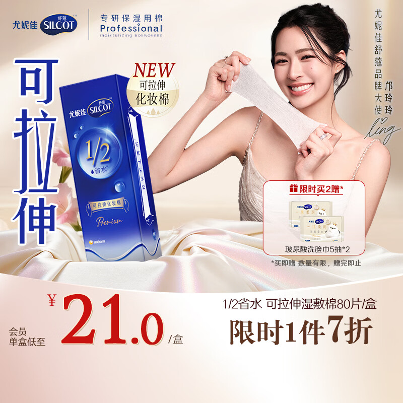 舒蔻【邝玲玲同款】尤妮佳1/2省水可拉伸化妆棉湿敷棉敷脸敏感肌80片