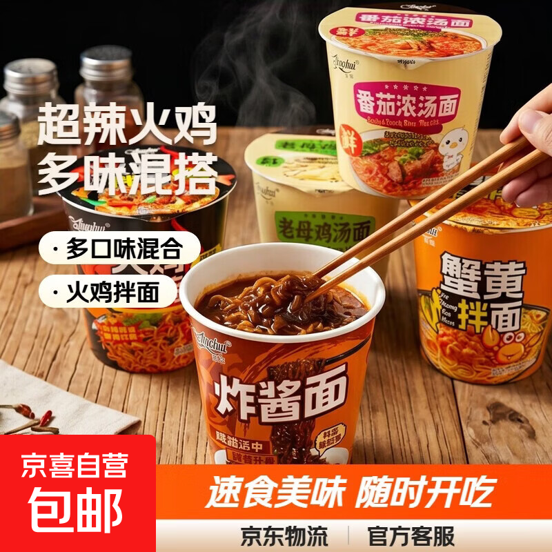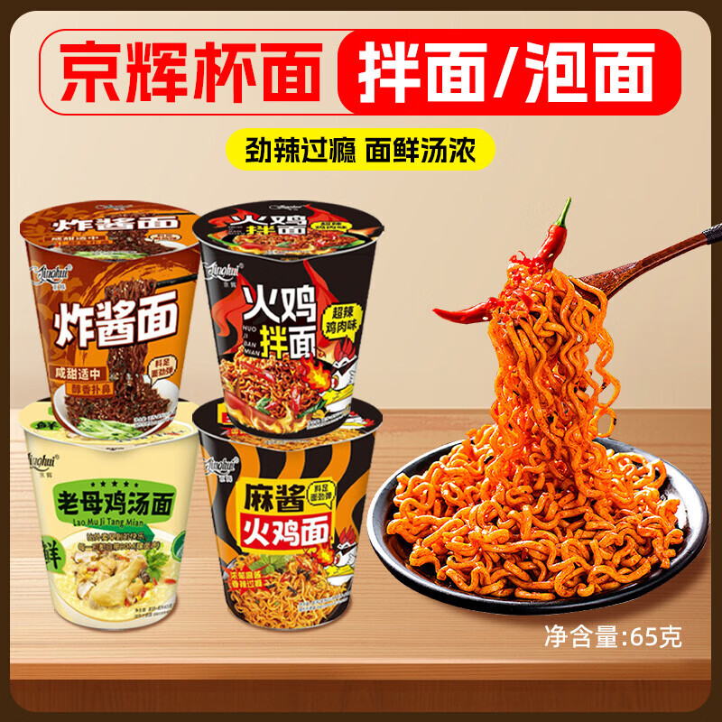 【爆款】京辉超辣火鸡拌面炸酱面多口味拌面泡面速食夜宵早餐美味 随机混装(不指定) 65克*1桶