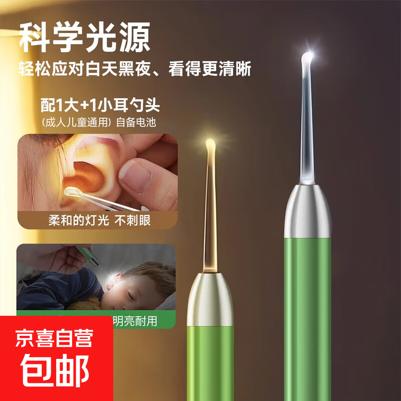 儿童大人发光挖耳勺软头带灯安全8倍放大镜可视宝宝成人专用掏耳神器 发光耳勺(配1大+1小耳勺头)不含电池
