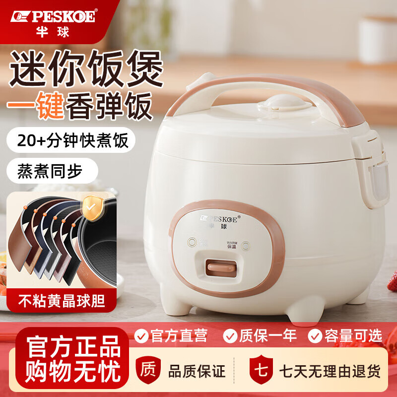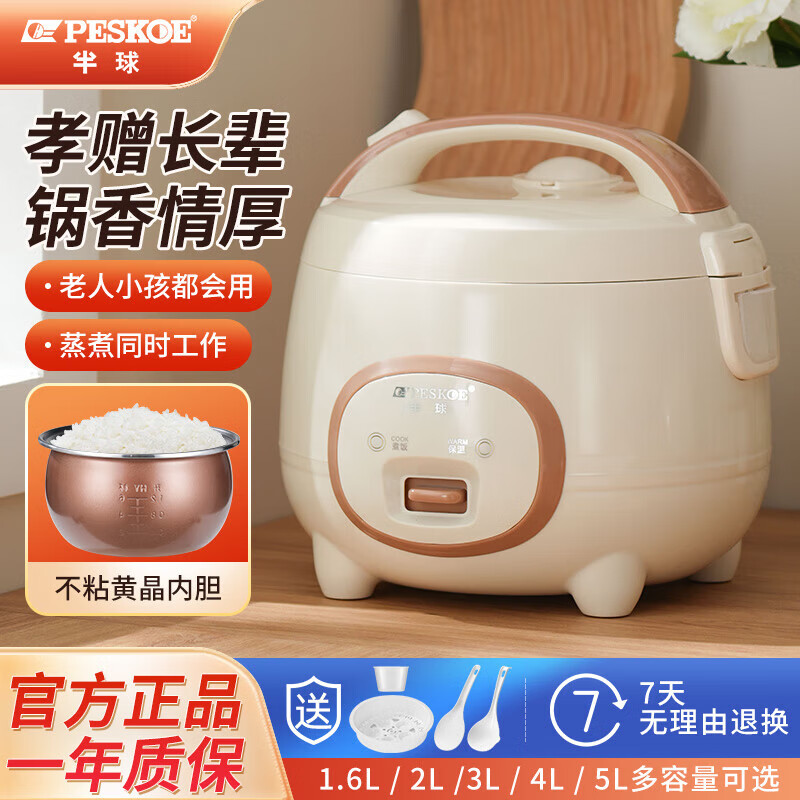半球(PESKOE)电饭煲电饭锅家用电饭煲1-2人升可蒸煮宿舍可用不粘锅不溢锅1.6-5L小型单人老式家用电 机械款 2L 【不粘厚球胆】1-3人用