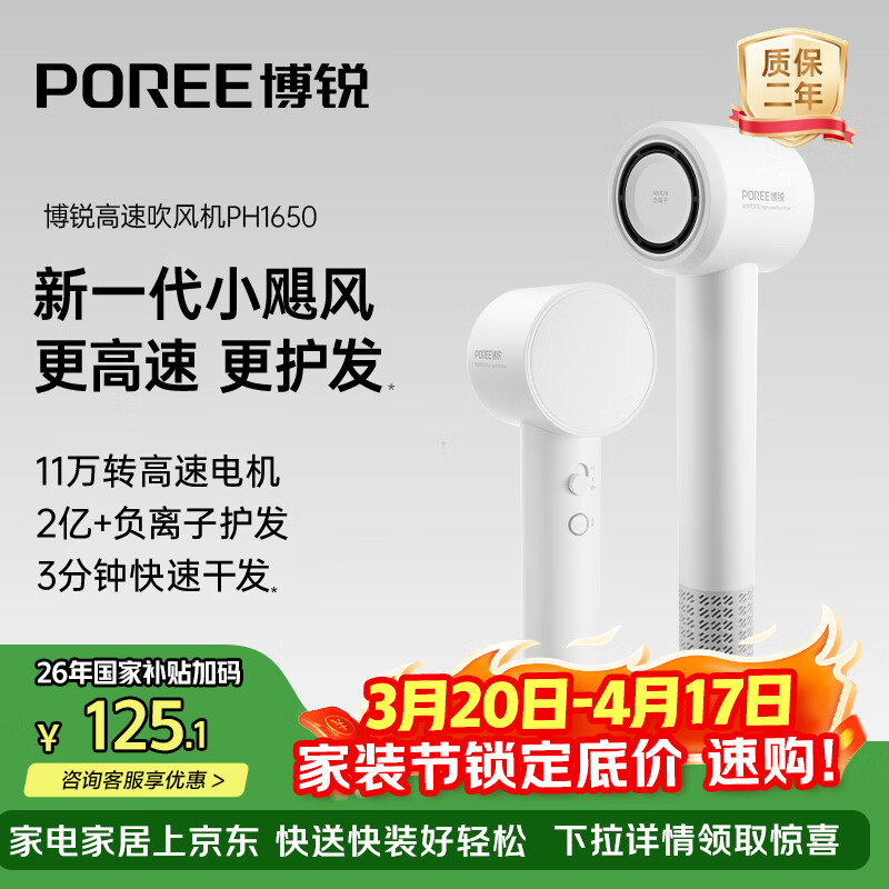 飞科博锐高速吹风机负离子护发电吹风筒大功率不伤发吹头发家用 学生宿舍用 生日礼物PH1650白