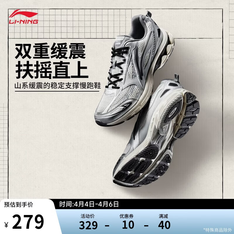 李宁扶摇 2.0丨山系缓震跑步鞋男鞋夏季透气老爹鞋运动鞋ARXU001