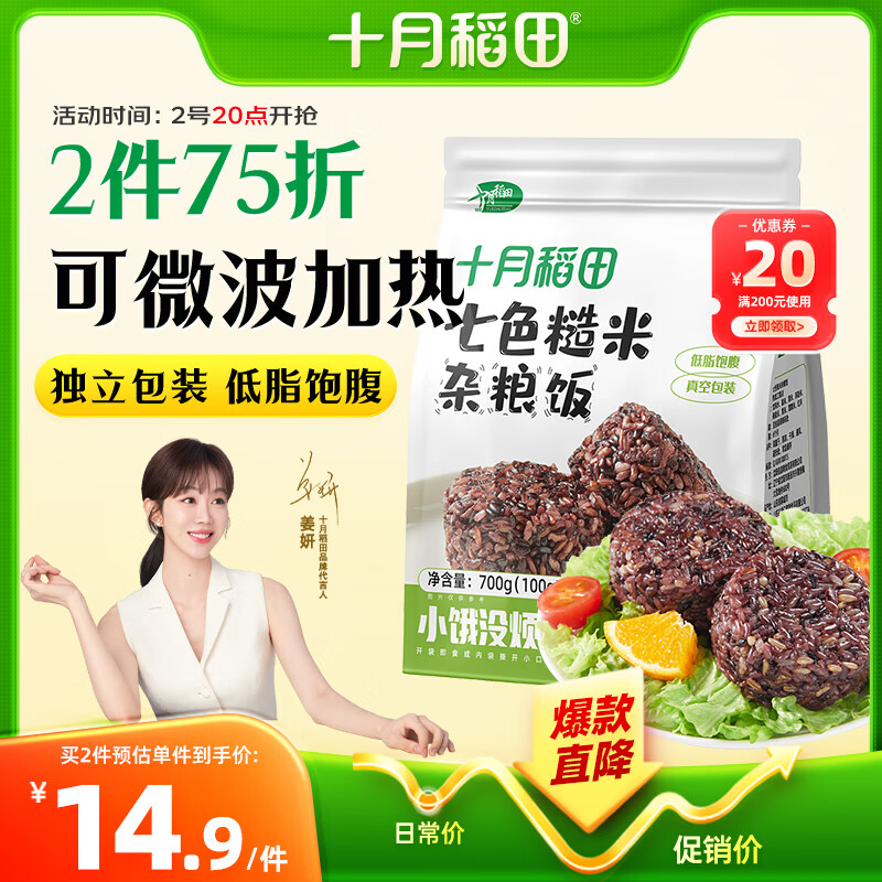 十月稻田七色糙米饭团 100g*7 开袋微波代餐 粗粮杂粮 早餐速食 低脂饱腹
