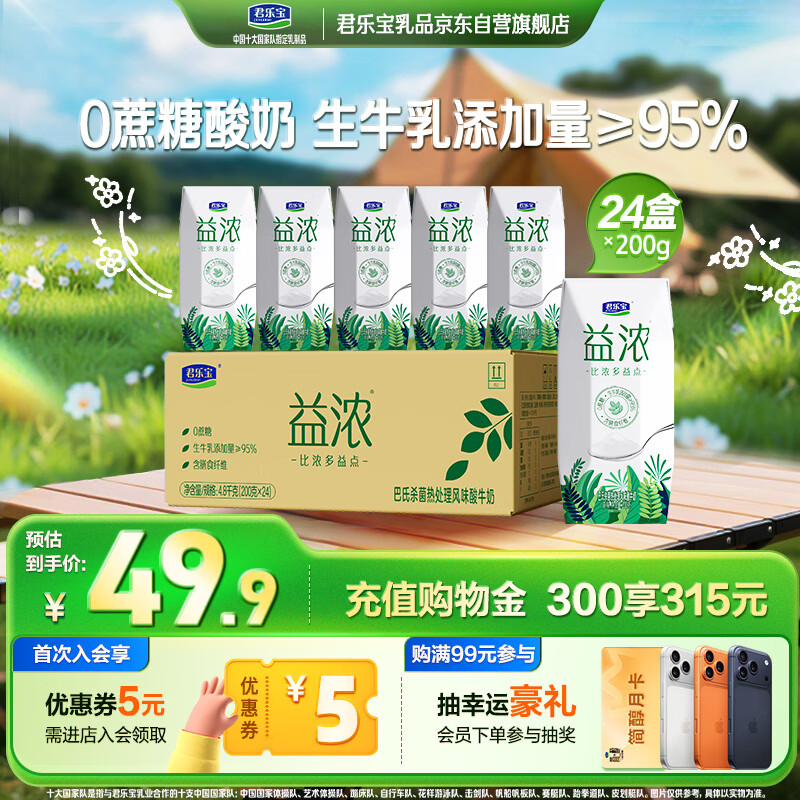 君乐宝(JUNLEBAO)益浓 常温酸奶风味酸牛奶 0添加蔗糖 200g*24盒整箱量贩装