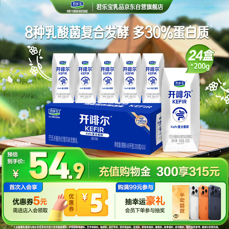 君乐宝(JUNLEBAO)开啡尔 常温风味发酵乳 原味酸奶200g*24 家庭量贩装