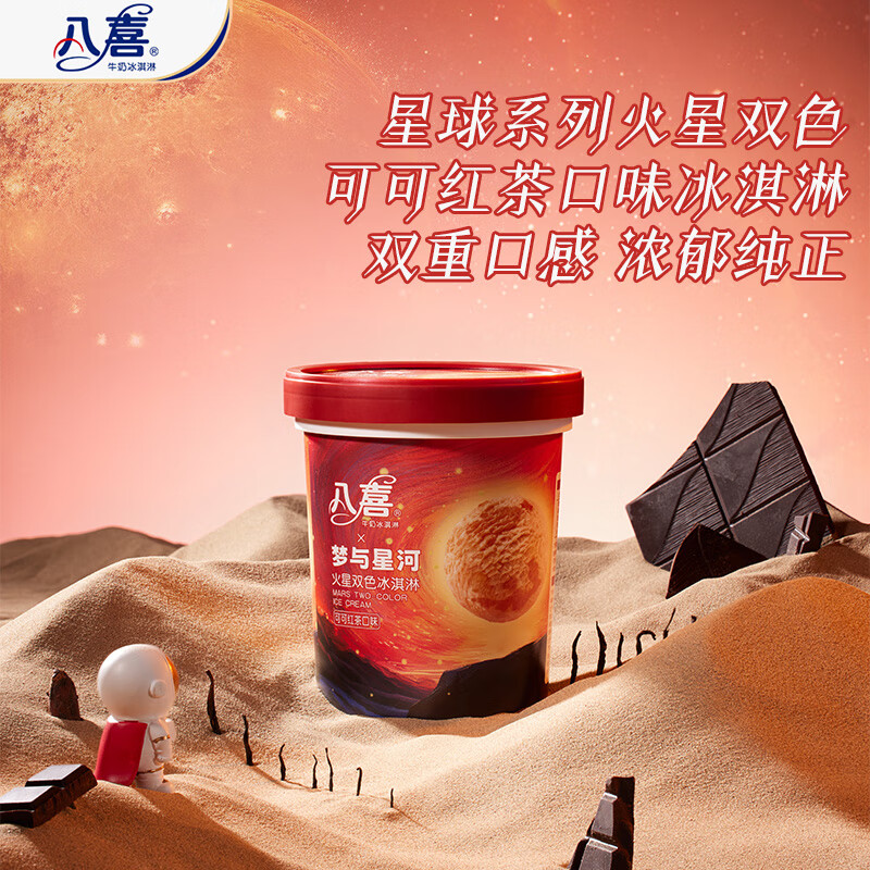 八喜冰淇淋 火星双色 可可红茶口味550g*1桶 家庭装 大杯冰淇淋