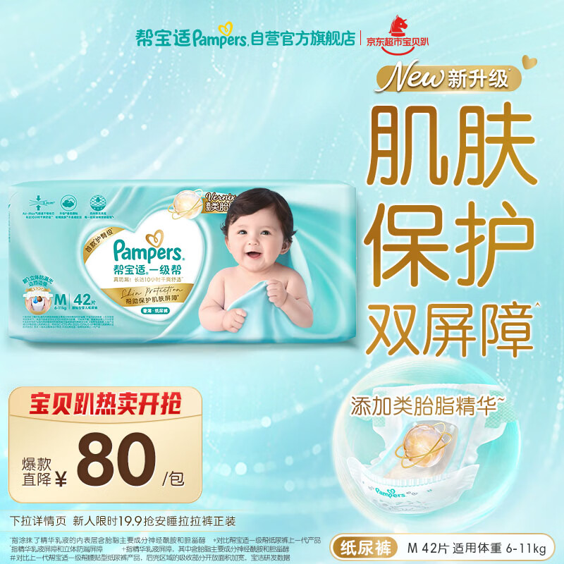 帮宝适类胎脂新一级帮新生儿婴儿防漏超薄纸尿裤M42尿不湿尿裤