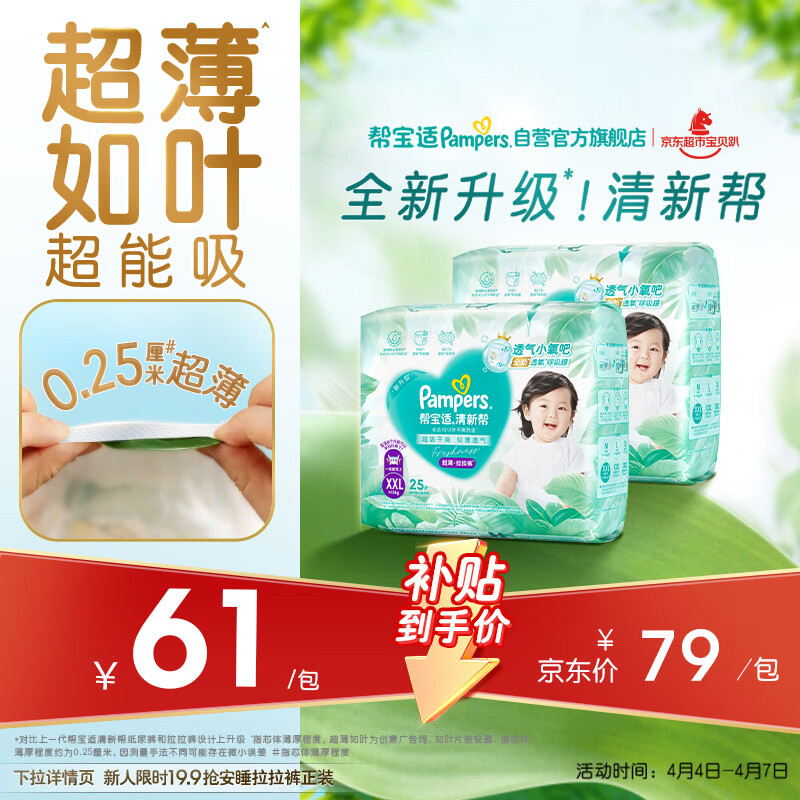 帮宝适超薄透气清新帮拉拉裤新生儿婴儿尿不湿尿片透氧Pro XXL50