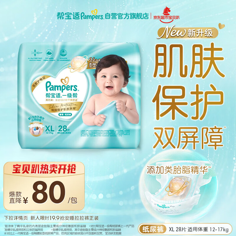 帮宝适类胎脂新一级帮新生儿婴儿防漏超薄纸尿裤XL28尿不湿尿裤
