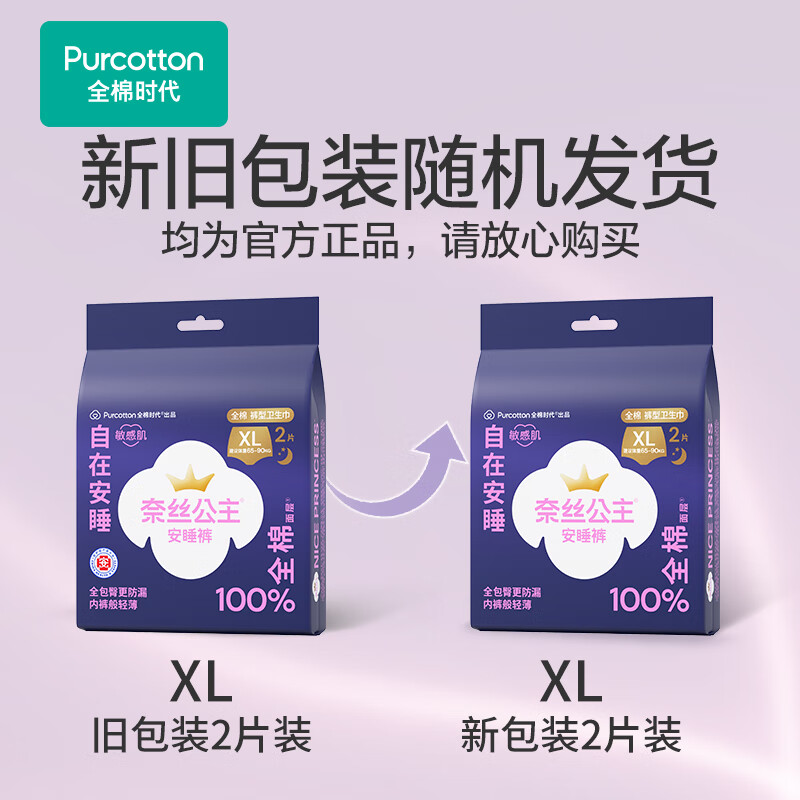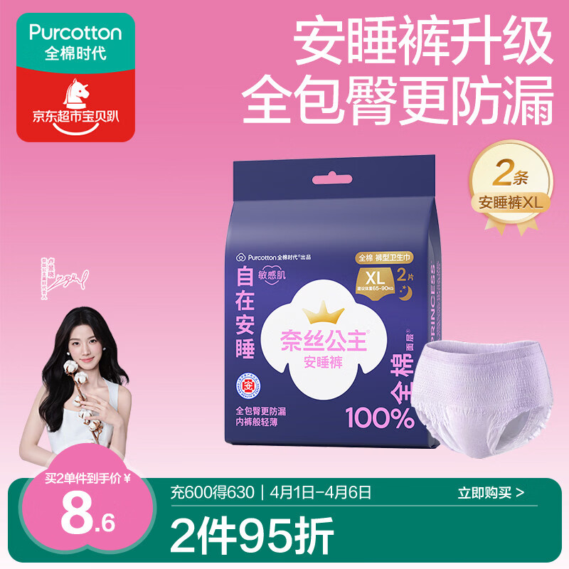 全棉时代【卢昱晓推荐】奈丝公主安心裤安睡裤裤型卫生巾XL2条旅行装