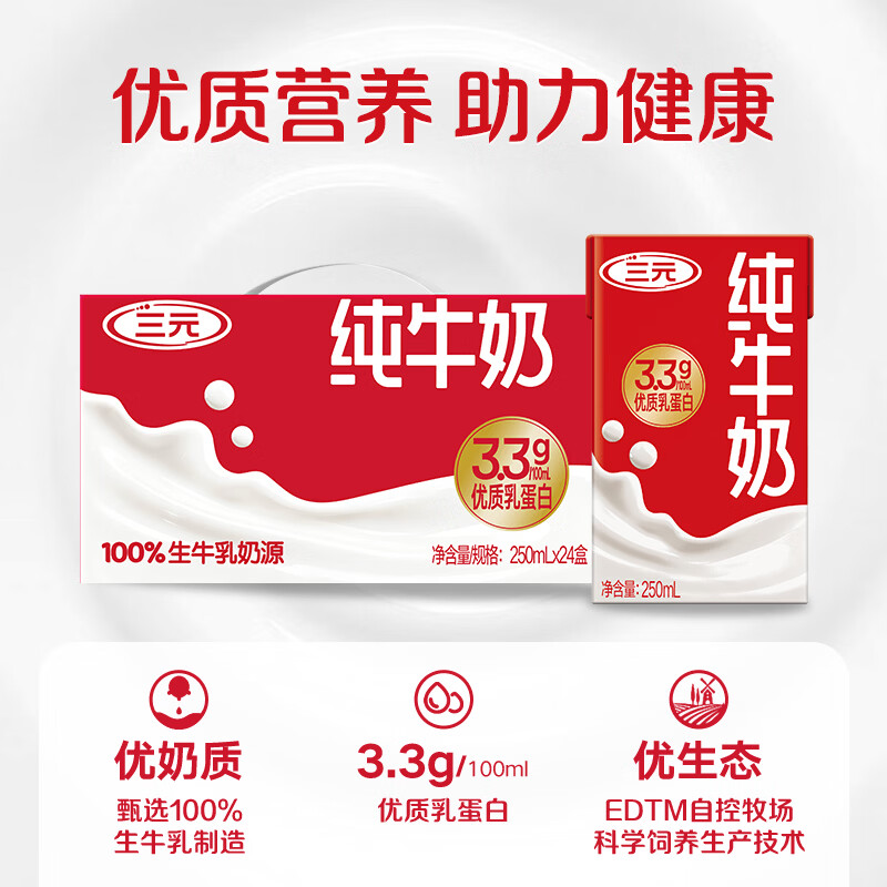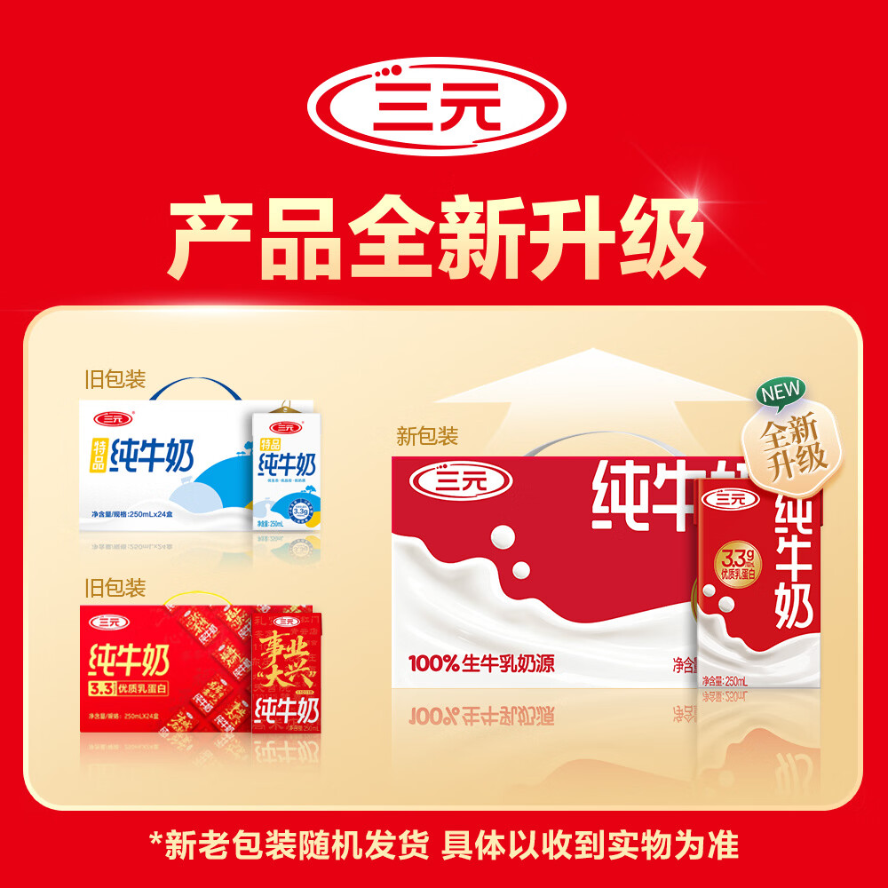 三元纯牛奶250ml*24盒北京限定(原特品) 整箱送礼 新老包装随机发货