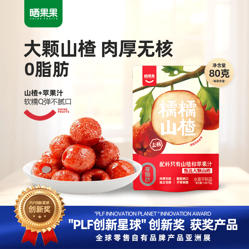 晒果果糯糯山楂配料干净无核山楂球糖葫芦独立包装休闲零食80克