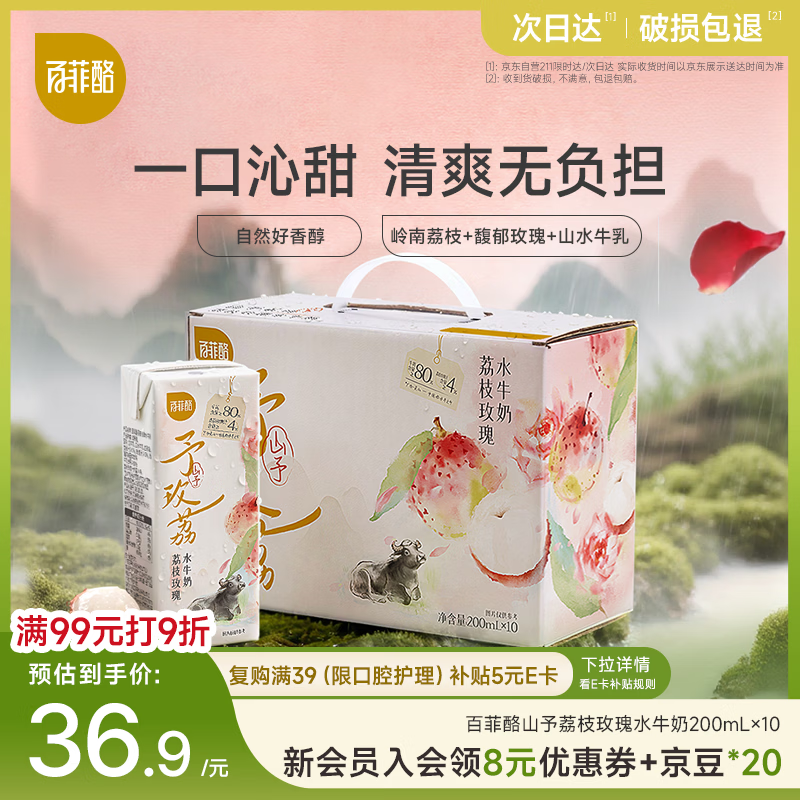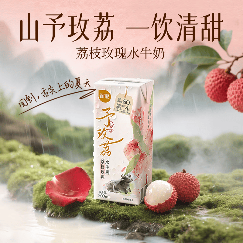 百菲酪【山予系列】荔枝玫瑰水牛奶200ml*10盒果香花香 部分地区1月效期