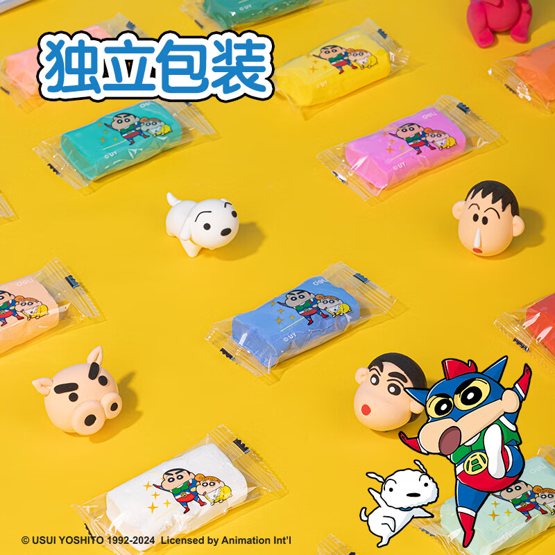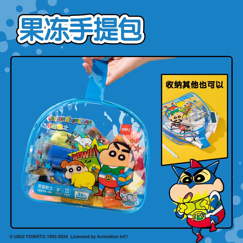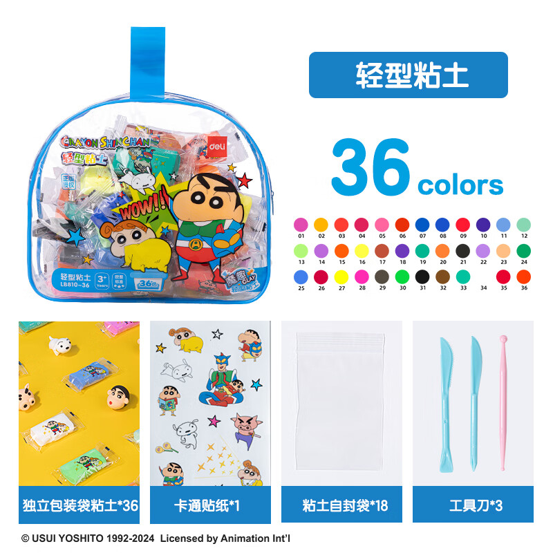 得力(deli)(deli)蜡笔小新36色袋装超轻粘土黏土果冻包橡皮泥彩泥幼儿园学生DIY手工玩具儿童生日礼物赠贴纸t