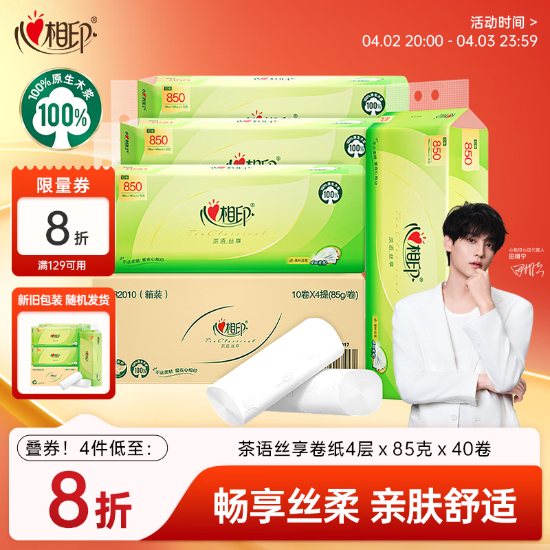 心相印无芯卷纸 茶语丝享4层85g*40卷 卫生纸 纸巾 大分量整箱销售