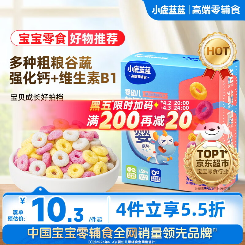 小鹿蓝蓝非油炸谷物圈 婴幼儿宝宝零食儿童营养早餐冲泡即食48g 8月以上