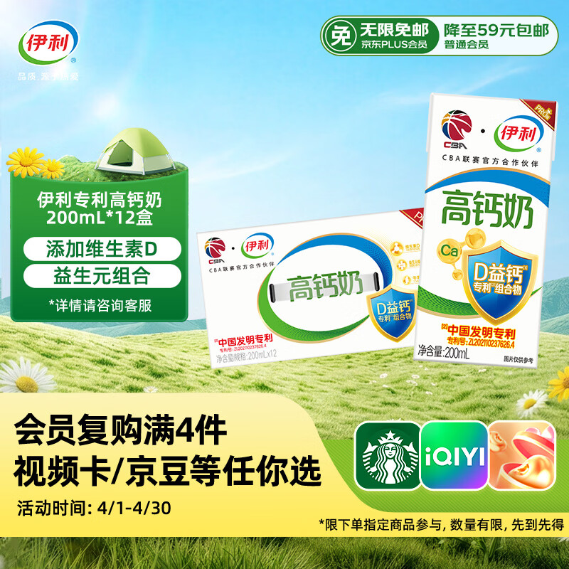 伊利专利高钙牛奶 200ml*12盒 添加维生素D 益生元 礼盒装