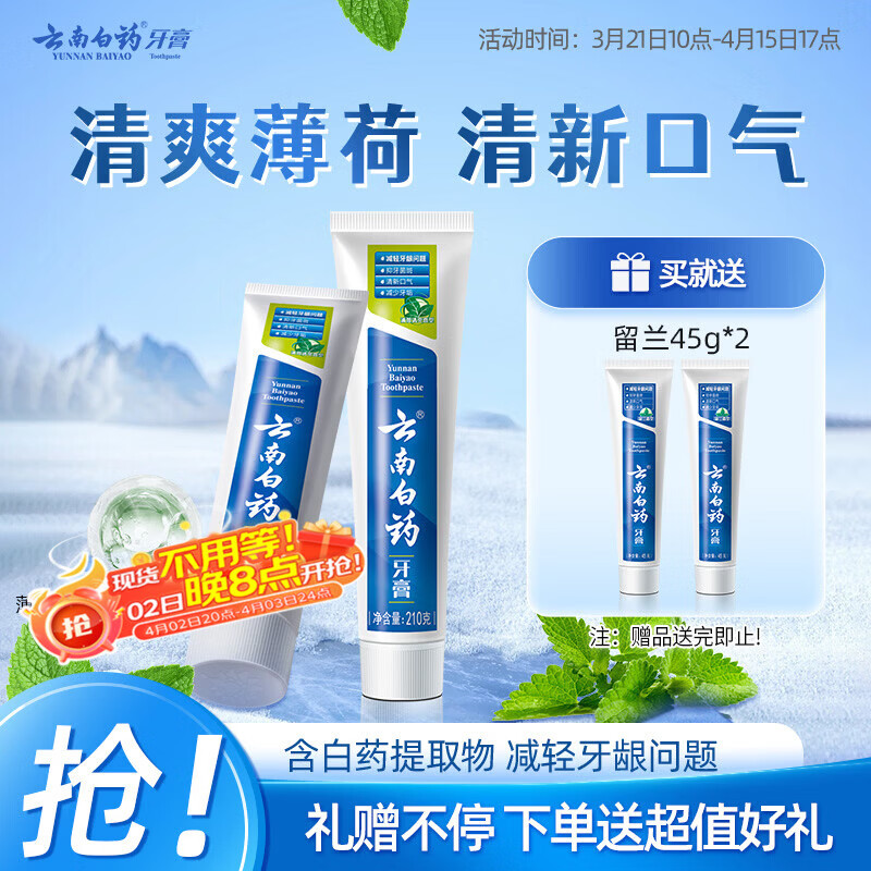 云南白药【采销推荐】经典薄荷护龈牙膏套装 清新口气改善牙龈问题210g*2