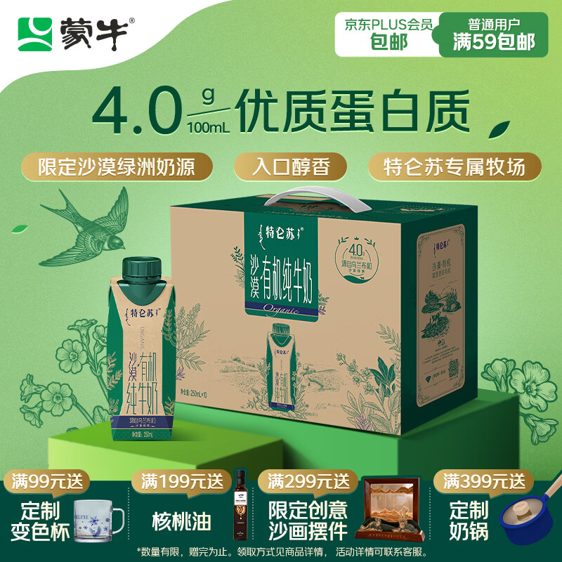 蒙牛特仑苏沙漠有机纯牛奶250ml*10盒 乌兰布和专属