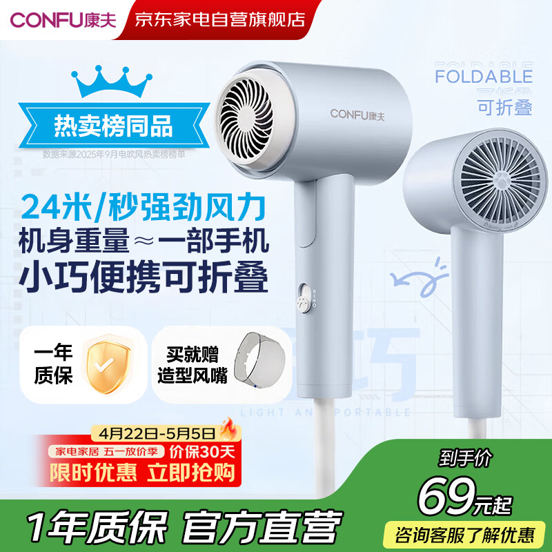 康夫吹风机电吹风家用大功率速干恒温不伤发便捷可折叠低噪音吹风筒男女生日礼物 3152