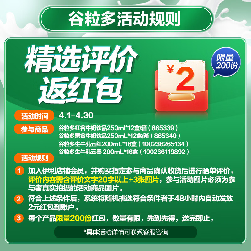 伊利【新鲜日期】谷粒多 黑谷牛奶饮品整箱 250ml*12盒 礼盒装