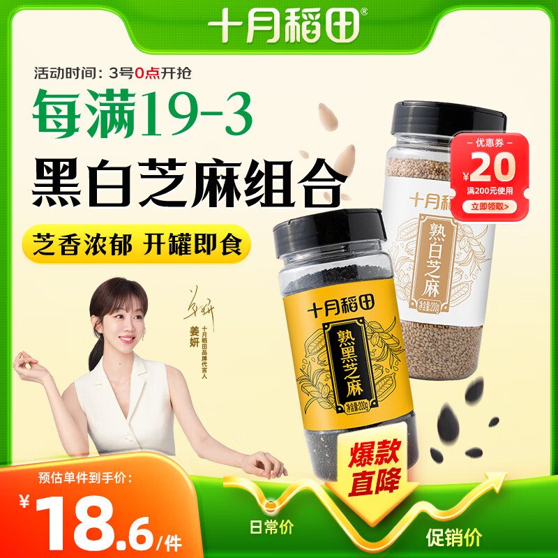十月稻田 熟黑白芝麻组合装(200g*2) 凉拌调味 即食杂粮 芝麻酱糊原料