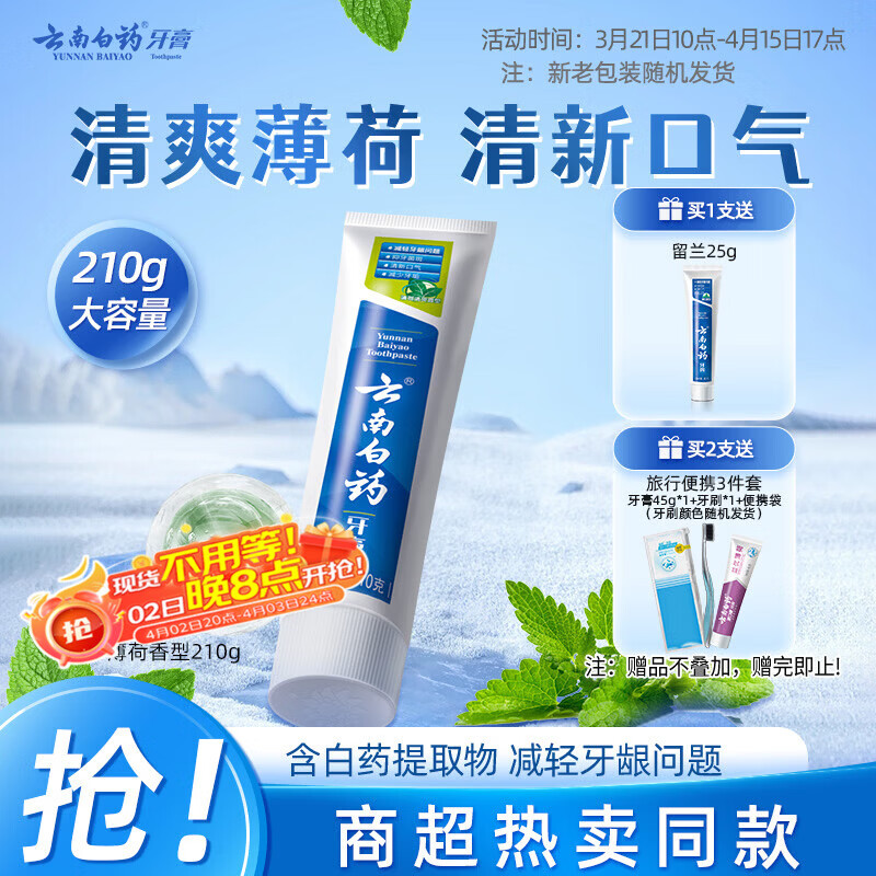 云南白药【采销推荐】经典薄荷护龈牙膏 改善牙龈问题 祛牙垢清新口气210g