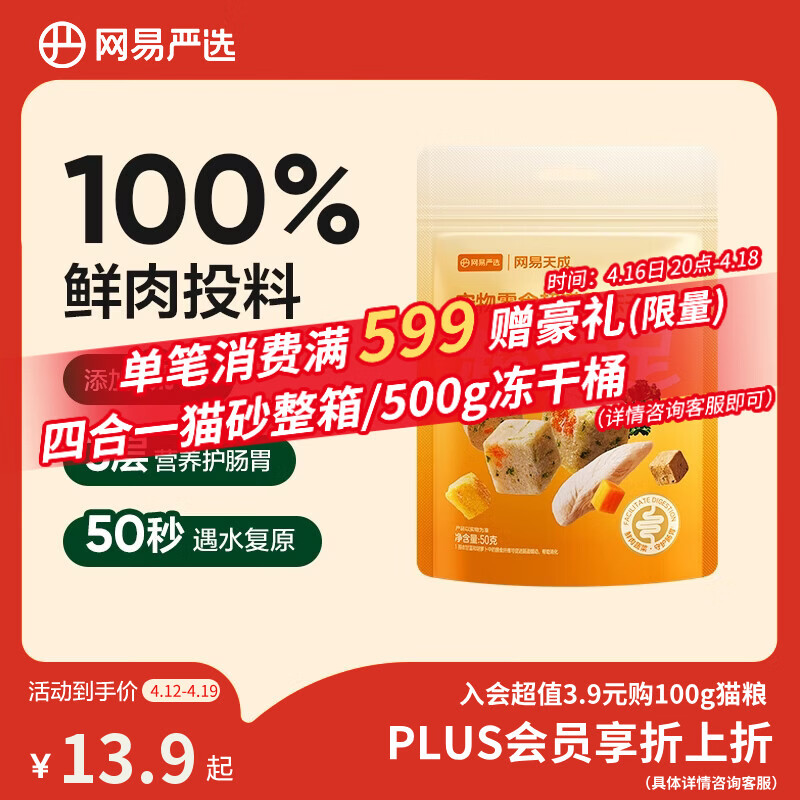 网易严选冻干桶鸡肉宠物零食100%鲜肉蛋黄五拼猫狗通用 呵护肠胃 50g