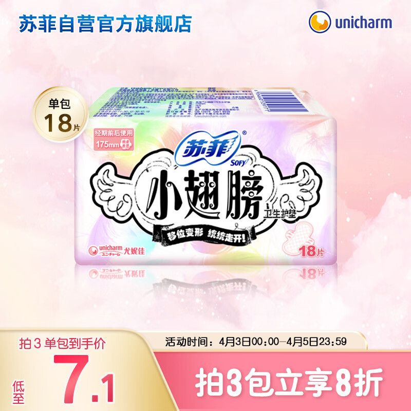 苏菲小翅膀无香棉柔护翼护垫175mm18片 迷你量少日用京东自营官方旗舰