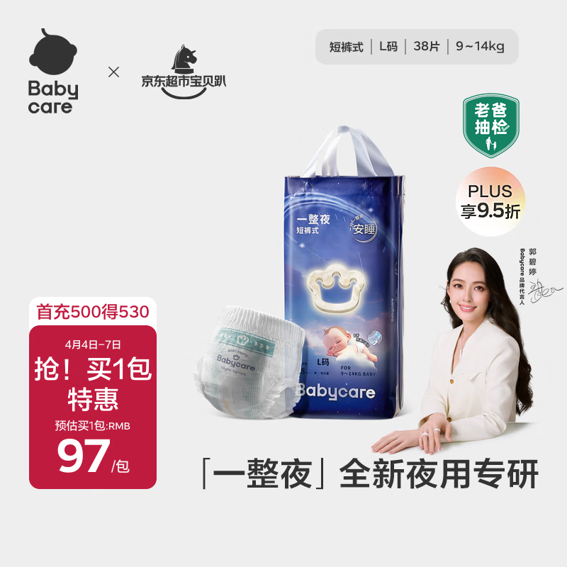 babycare一整夜拉拉裤L38片(9-14kg)大吸量透气夜用安睡婴儿尿不湿