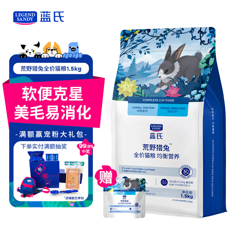 LEGENDSANDY蓝氏 全价猫粮成猫幼猫生骨肉冻干粮 猎鸟乳鸽系列兔肉口味1.5kg