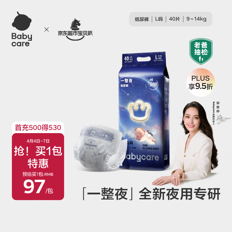 babycare一整夜纸尿裤L40片(9-14kg)大吸量透气夜用安睡婴儿尿不湿