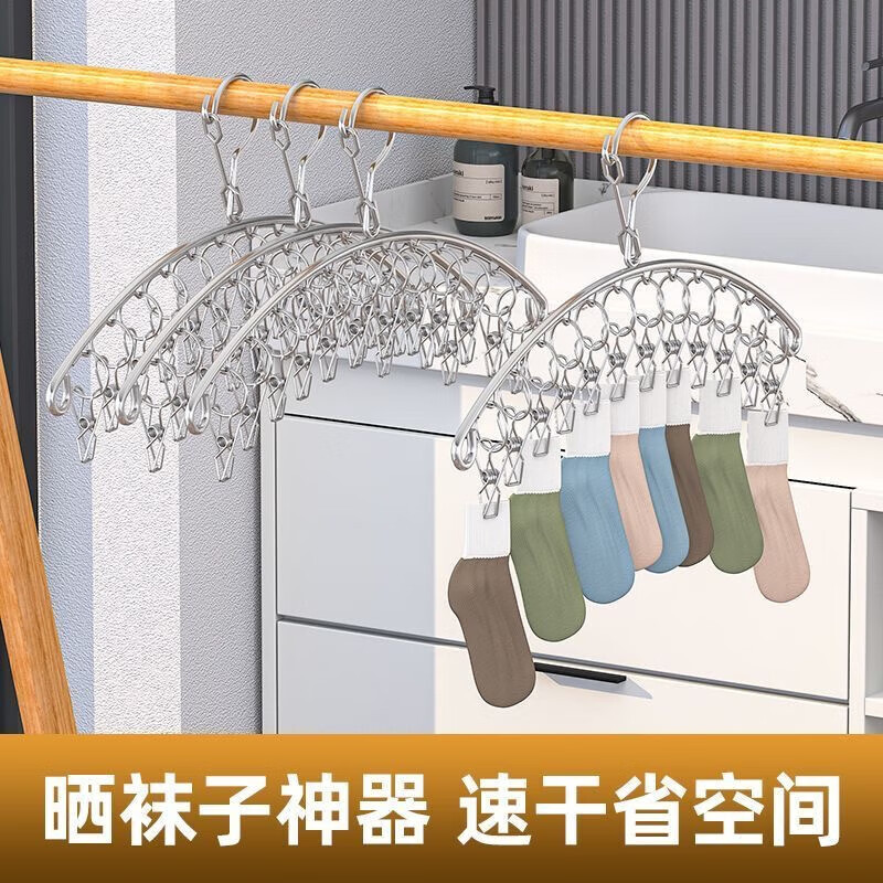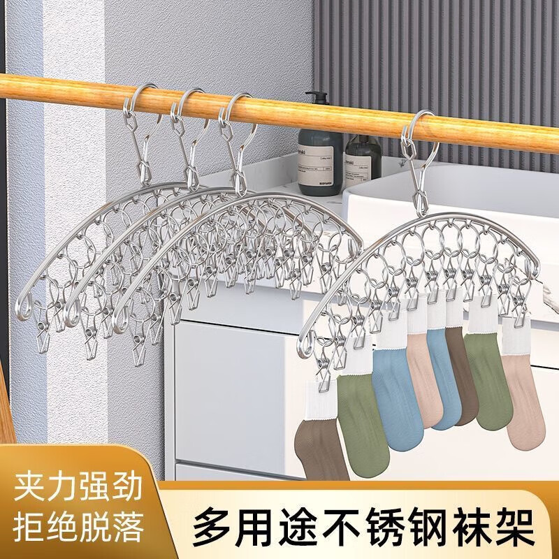 不锈钢晾衣架袜子夹内衣夹防风弧形家用收纳晾晒衣架晒挂架晾袜子晾内衣神器 防风弧形晾干衣夹【10夹】 1L