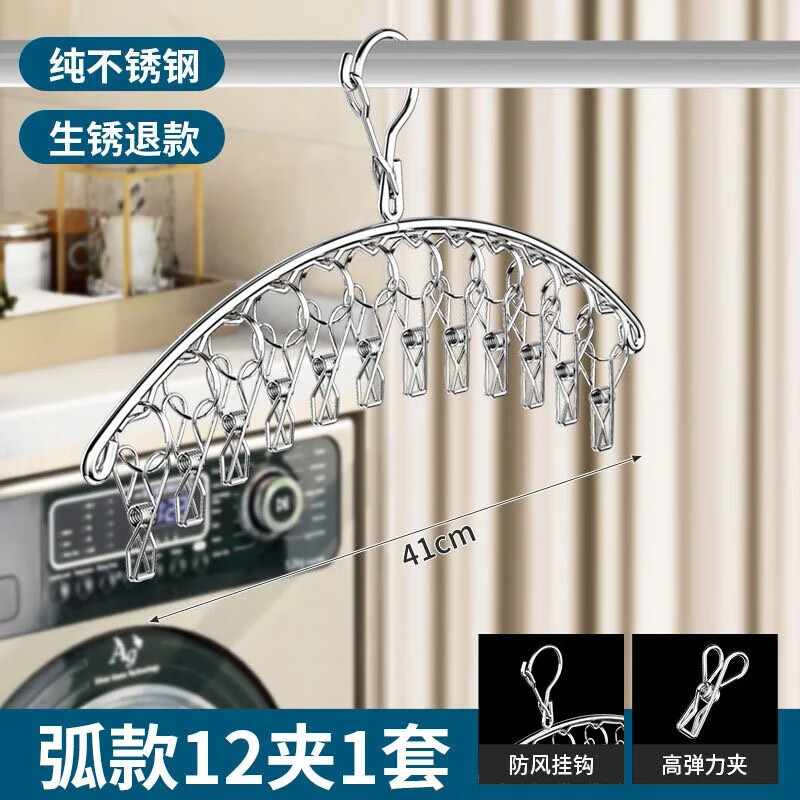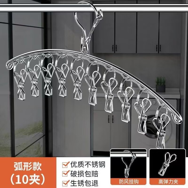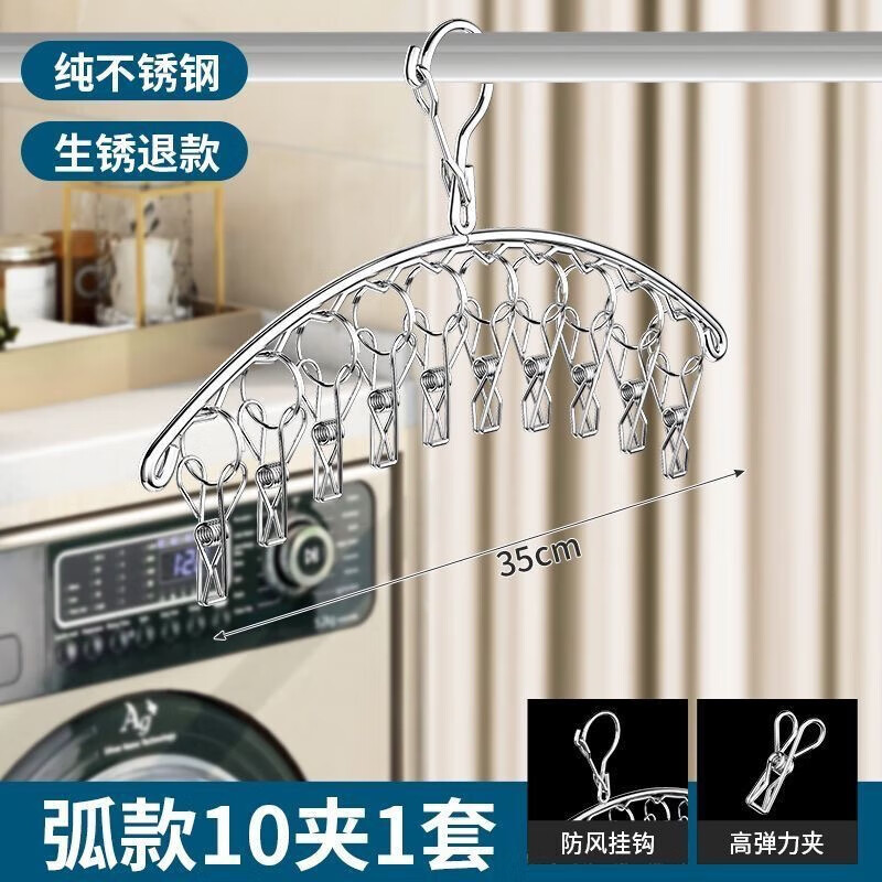 不锈钢晾衣架袜子夹内衣夹防风弧形家用收纳晾晒衣架晒挂架晾袜子晾内衣神器 防风弧形晾干衣夹【8夹】 1L