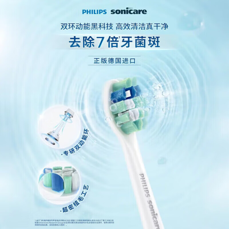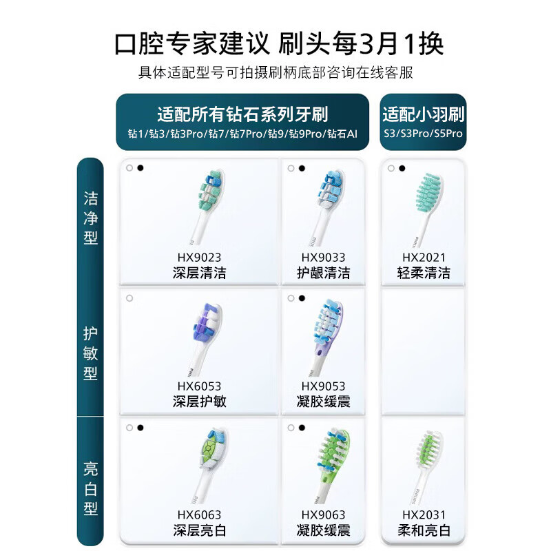 飞利浦(PHILIPS)电动牙刷头钻石亮白型 官方原装适配钻石3/7/9系列配件刷柄清洁护龈亮白 6支 超值囤货装-HX9023/67