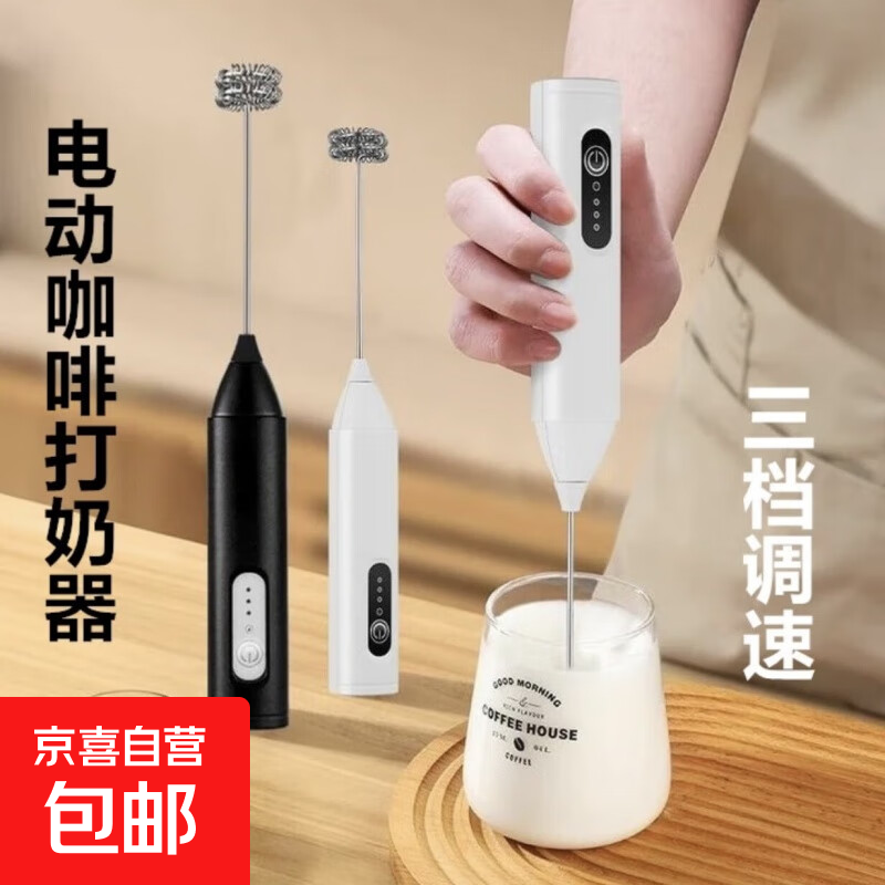 打蛋器打奶泡器电动奶油打发器打蛋机咖啡奶泡打泡器无线手持打奶油机400次咖啡 长续航【三档调速】双簧-米白