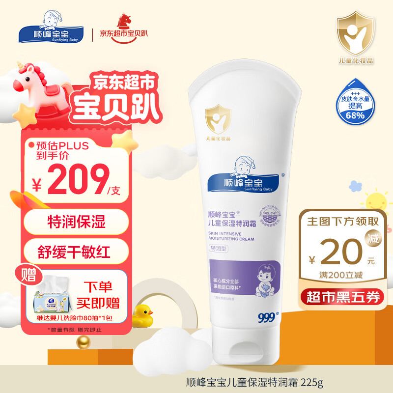 顺峰宝宝特润霜225g 宝宝面霜婴儿保湿霜新生儿青少年舒缓保湿润肤特润型