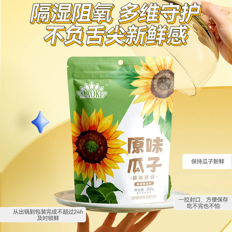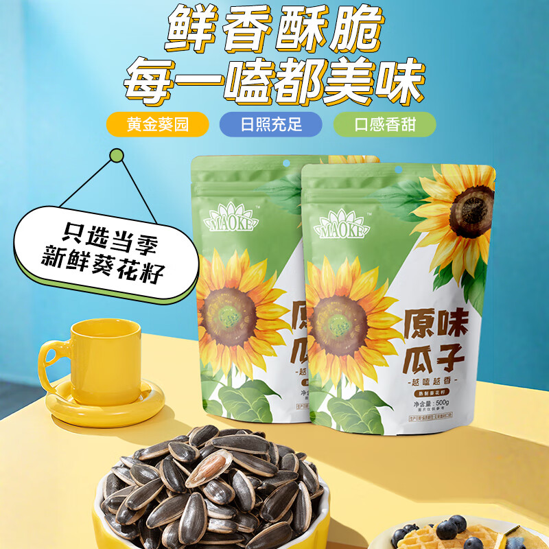 MAOKE毛嗑原味瓜子葵花籽大颗粒宿舍网红休闲零食小吃500g大包装