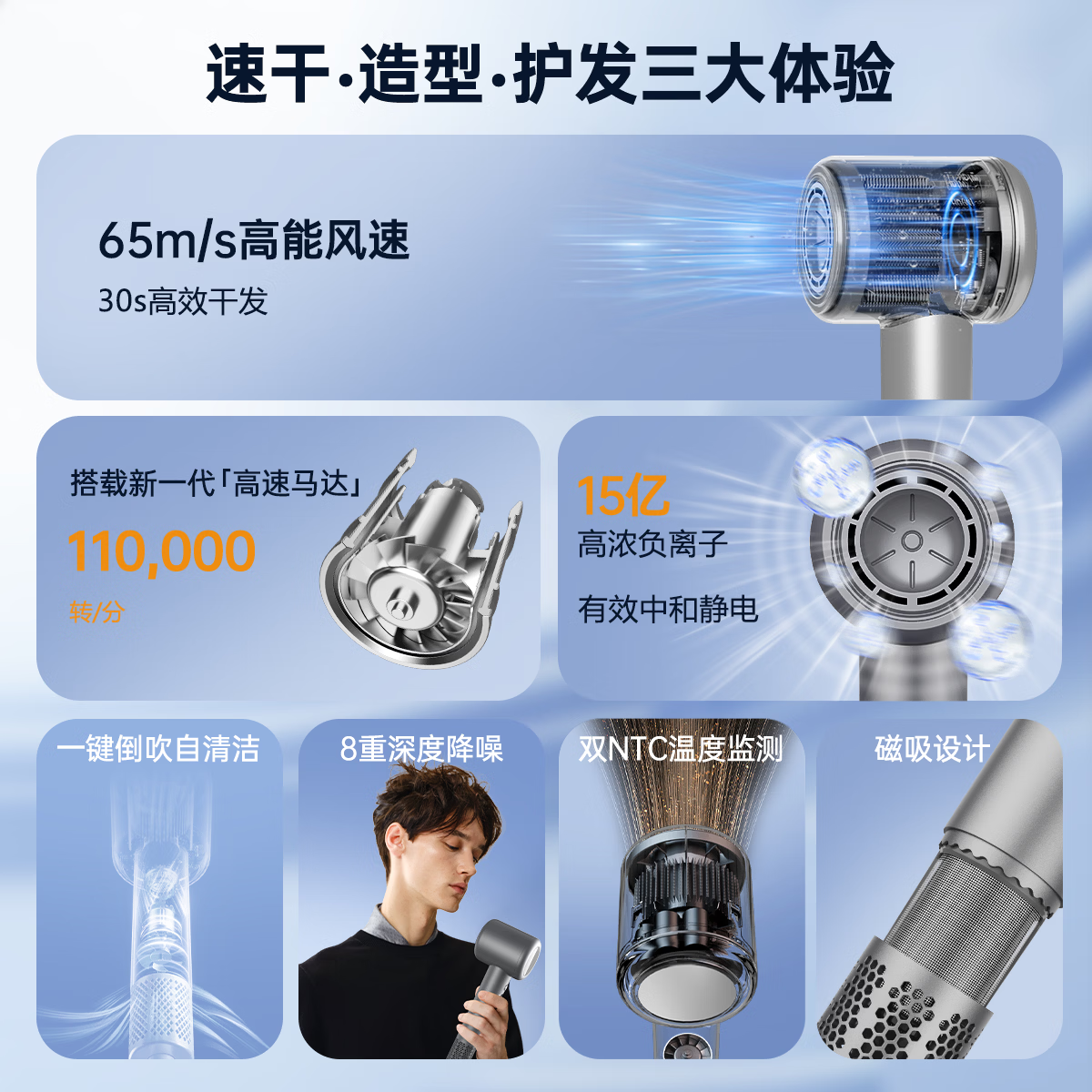 康夫(CONFU)高速电吹风机15亿负离子护发电吹风大功率速干家用大风力不伤发女士吹风筒节日/生日礼物推荐F8灰