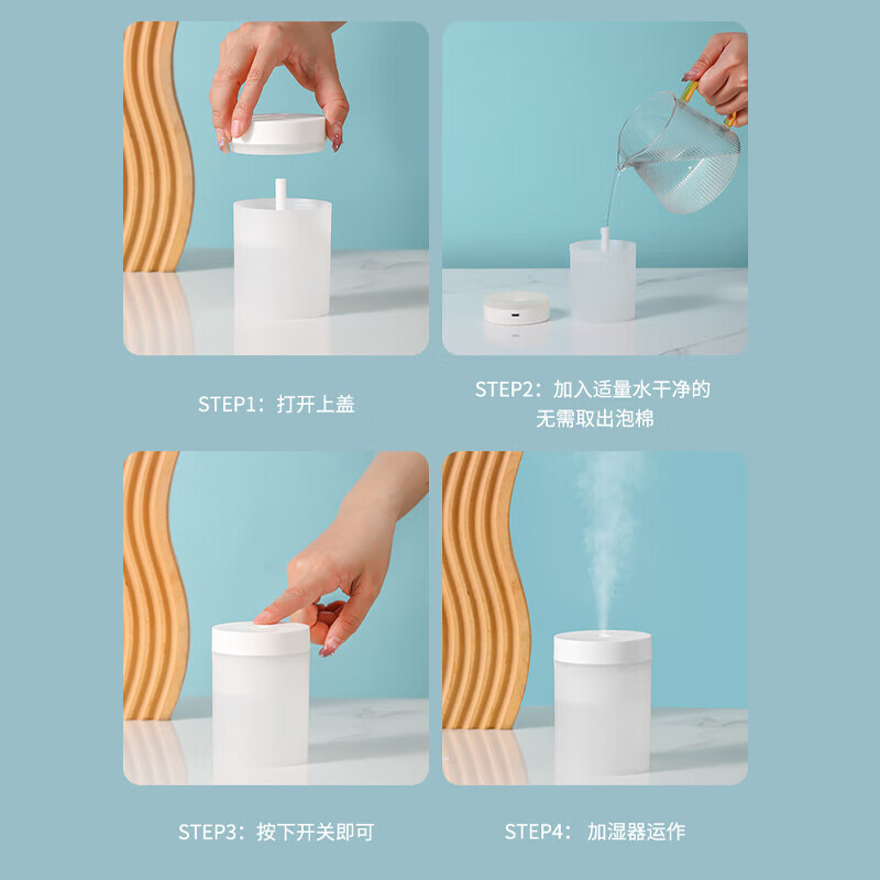 加湿器家用空气加湿器净化器空调房加湿器usb便携式办公学生宿舍补水孕妇婴儿卧室生日礼物女 【基础款】典雅白-氛围暖灯