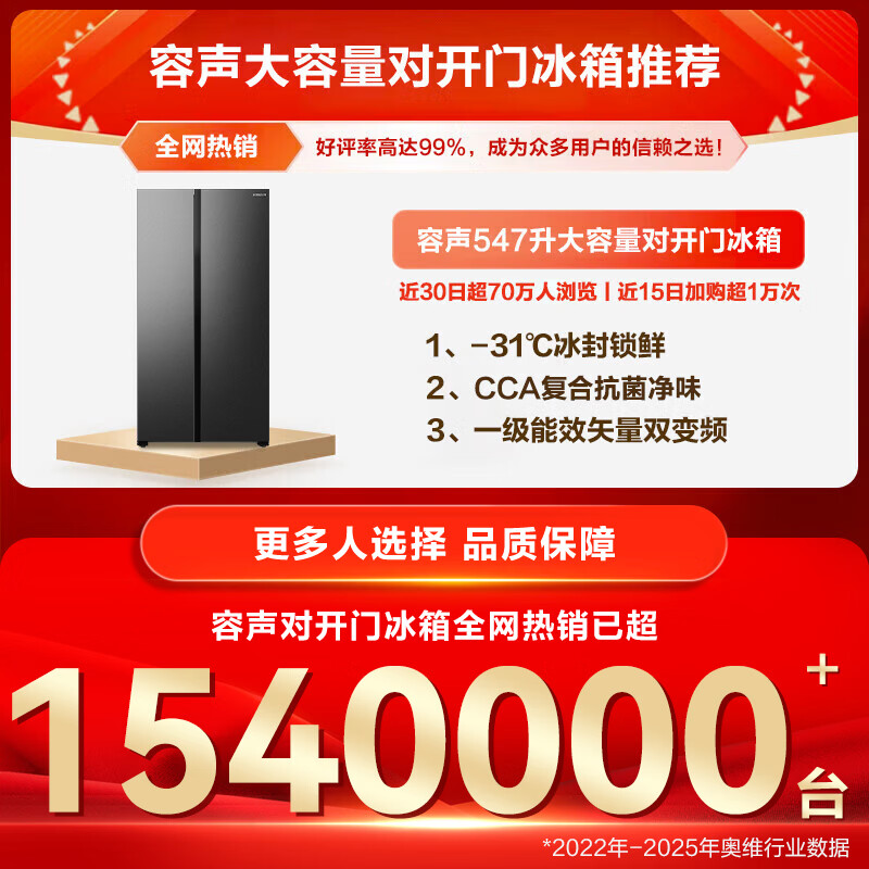 容声547L双开门冰箱大容量超薄一级能效风冷无霜双变频节能净味对开门以旧换新BCD-547WD12HP国家补贴