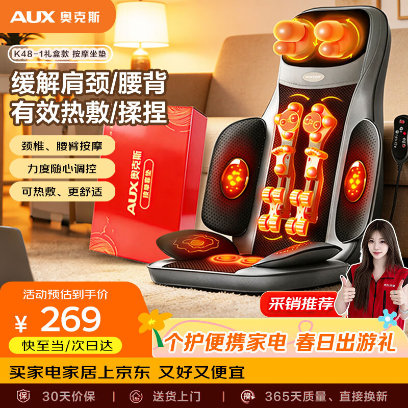 奥克斯(AUX)按摩器坐垫靠垫K48-1礼盒款颈椎按摩器肩部腰部背部游走开背揉捏按摩仪送父母女友生日节日礼物