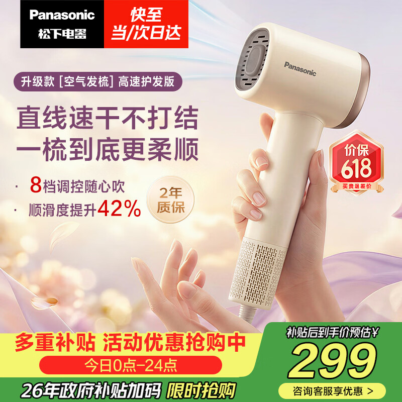 松下(Panasonic)空气发梳高速护发吹风机家用负离子大功率不伤发低噪速干电吹风筒生日母亲节礼物奶茶色EH-WNE6M