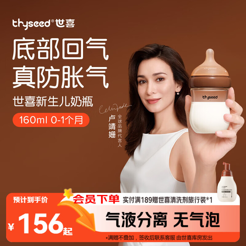 世喜奶瓶新生儿0-1个月防胀气玻璃婴儿仿母乳奶嘴160ml
