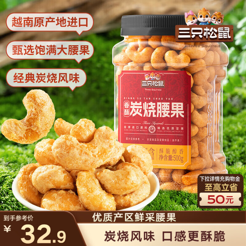 三只松鼠香酥炭烧腰果500g/罐装坚果炒货干果腰果仁休闲零食送礼