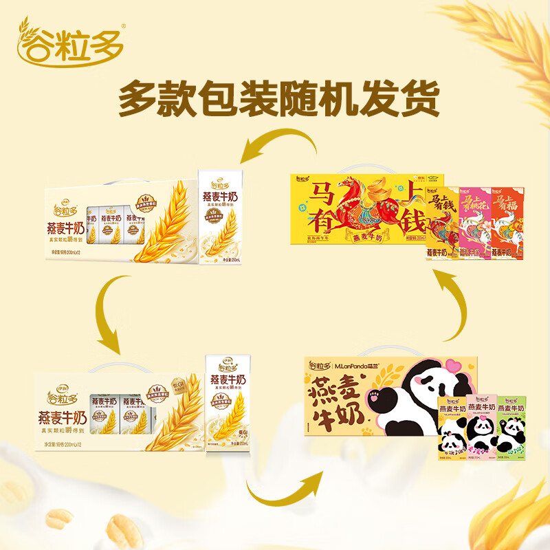 伊利谷粒多燕麦牛奶整箱 200ml*12盒 礼盒装 普通装混发 1月