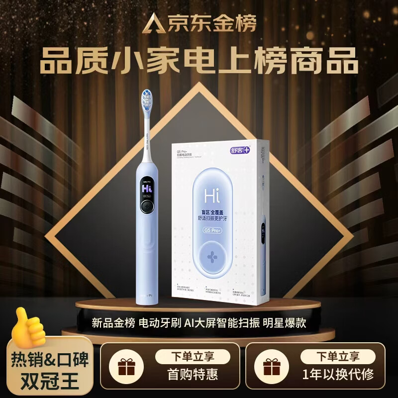 舒客大屏扫振电动牙刷 G5 Pro+漏刷提醒深度清洁成人送男友女友新年生日情人节礼物牙刷