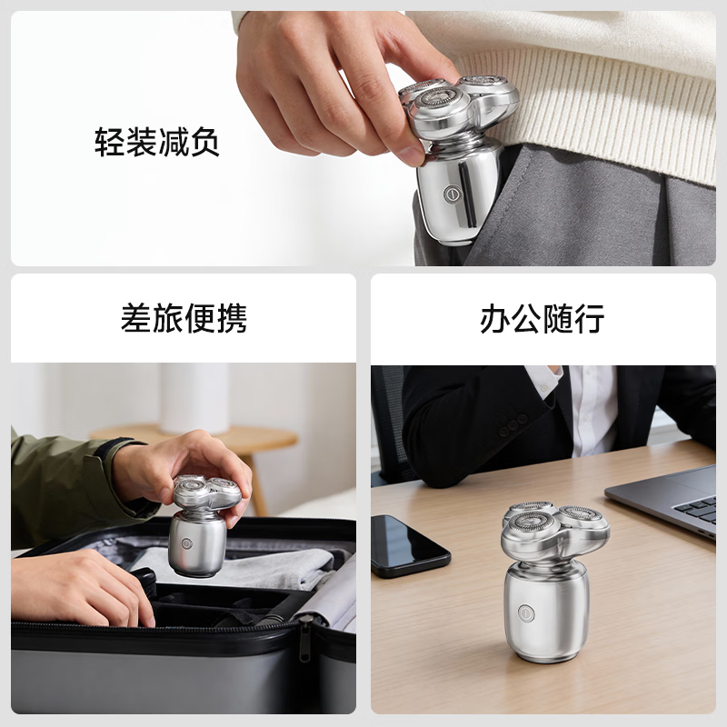 奔腾(POVOS)剃须刀T006冰川银小星锤电动迷你便携刮胡刀剃胡刀日常礼物送男友老公父亲生日实用贴心礼盒